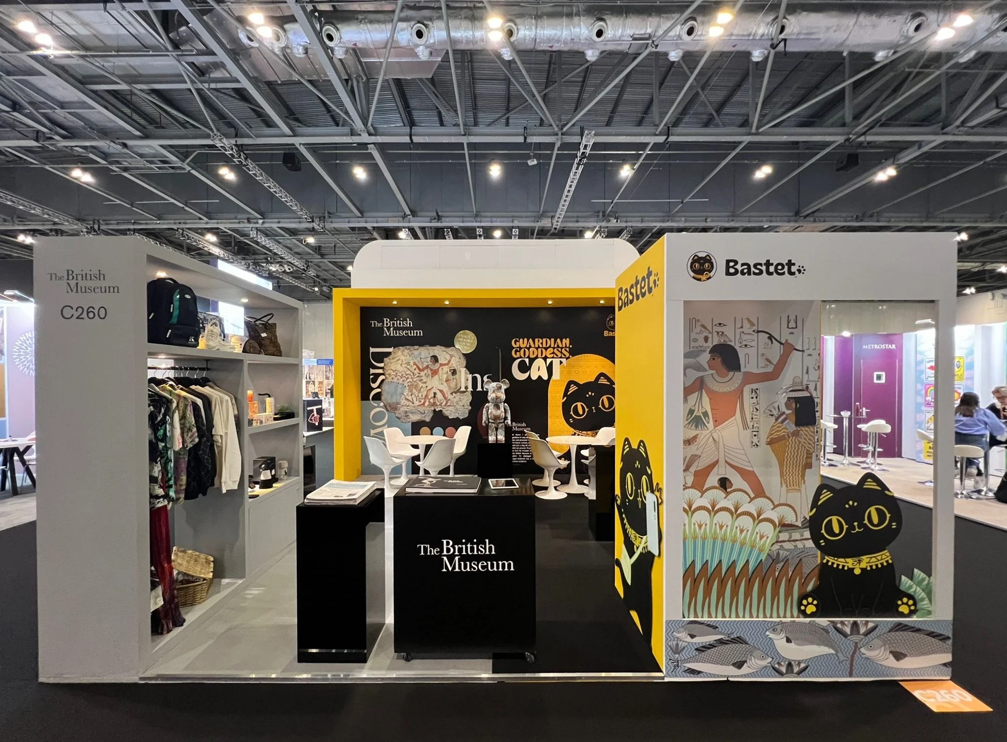 Our custom-built BLE stand for The British Museum shop brings Ancient Egypt to life with a hard-structured installation featuring Bastet, the guardian goddess cat, and scenes from the Tomb of Nebamun.